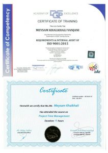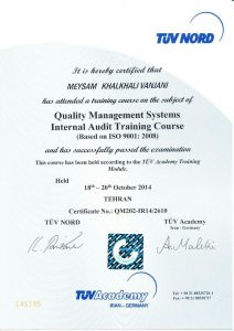 برخی از نمونه گواهینامه های کارشناسان کیفیت شرکت میاک کانتین